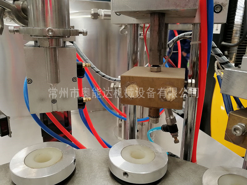 2、軟管試封,因軟管規格不同,使用不同模具加以配套,安裝完整模具座后,要調整高度,使管口達到封尾高度。開啟加熱開關,設定內加熱和外加熱兩溫度,通電以后電流表有指示,溫度應逐步迭加,達到理想的封口溫度。(通常情況內加熱設定250度,外加熱設定210度),等待溫度上升到設定值后即可灌裝。